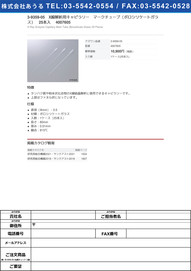 3-9359-05 X線解析用キャピラリー マークチューブ(ボロシリケートガラス) 25本入 4007605 3-9359-05 X線解析用キャピラリー マークチューブ(ボロシリケートガラス) 25本入 4007605 FAXでのご注文はこちら>>