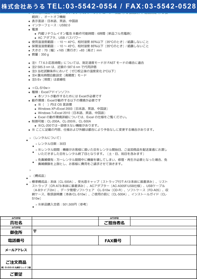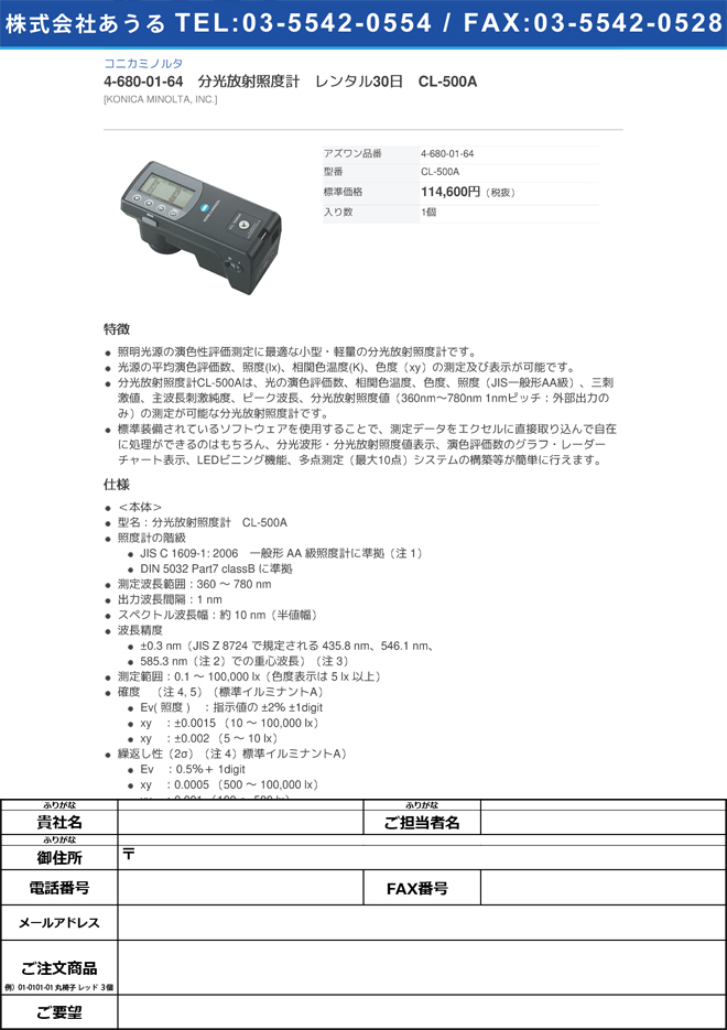 4-680-01-64 分光放射照度計 レンタル30日 CL-500A FAXでのご注文はこちら>>